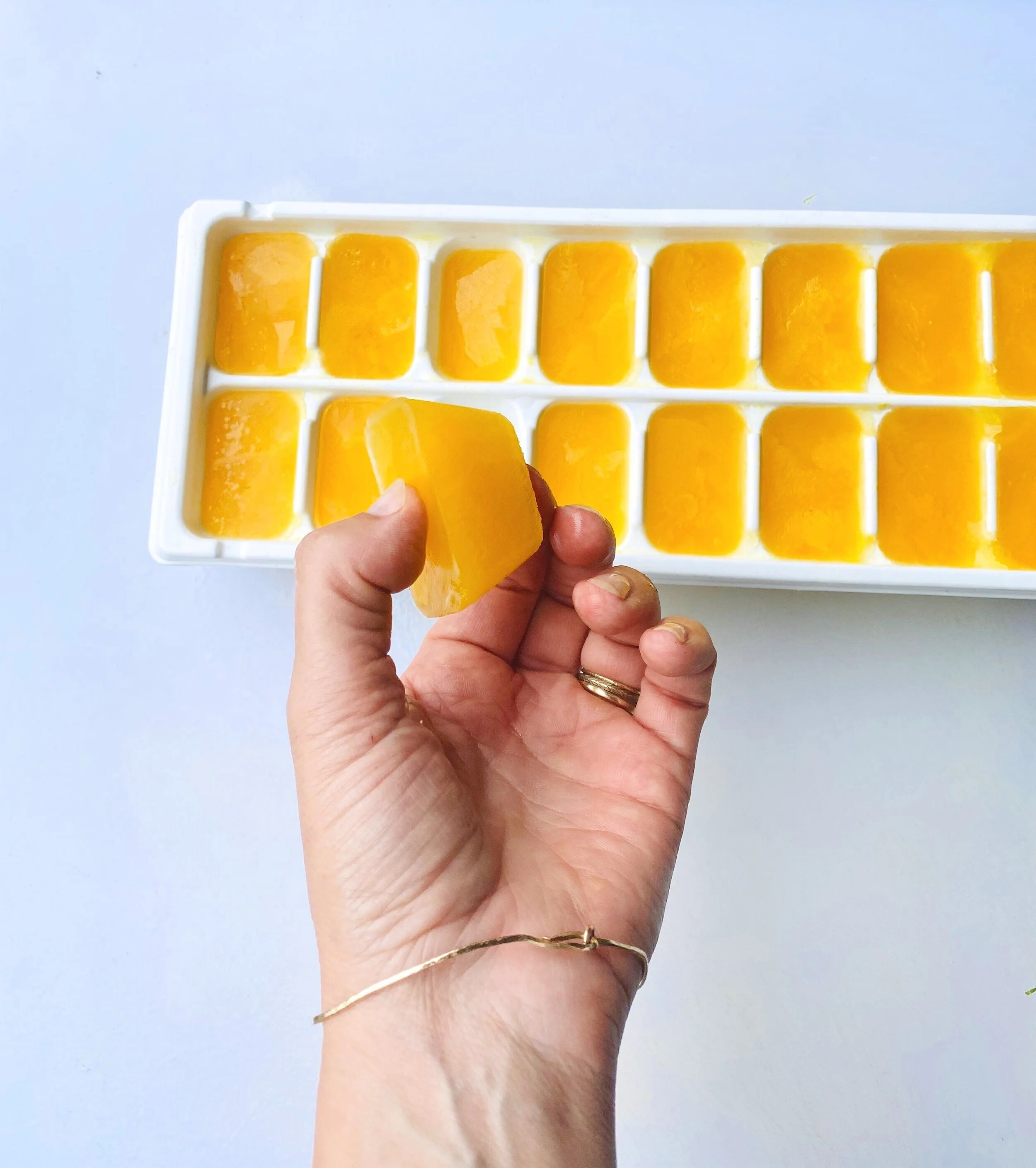 Turn your GLO or OJ into ice cubes to ensure you have everything you need when the time comes to make this smoothie! I suggest making the cubes, then popping them out and putting them in a container in the freezer so you can free up your ice cube tray.