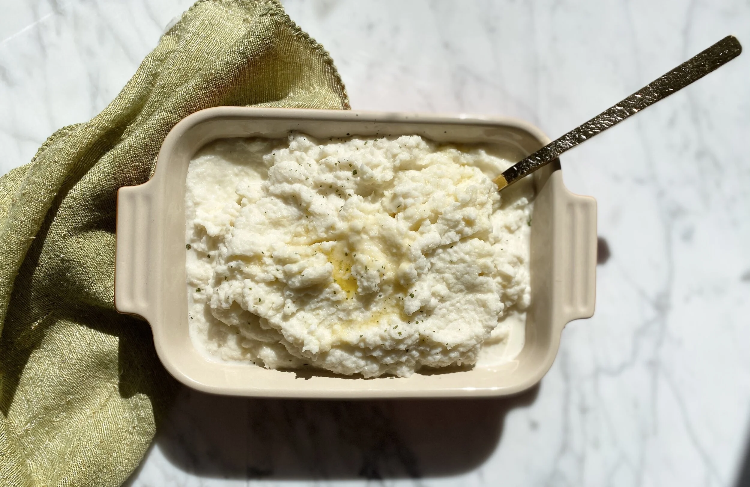 Add the steamed cauliflower and half of the butter into your high speed blender and blend just until smooth.