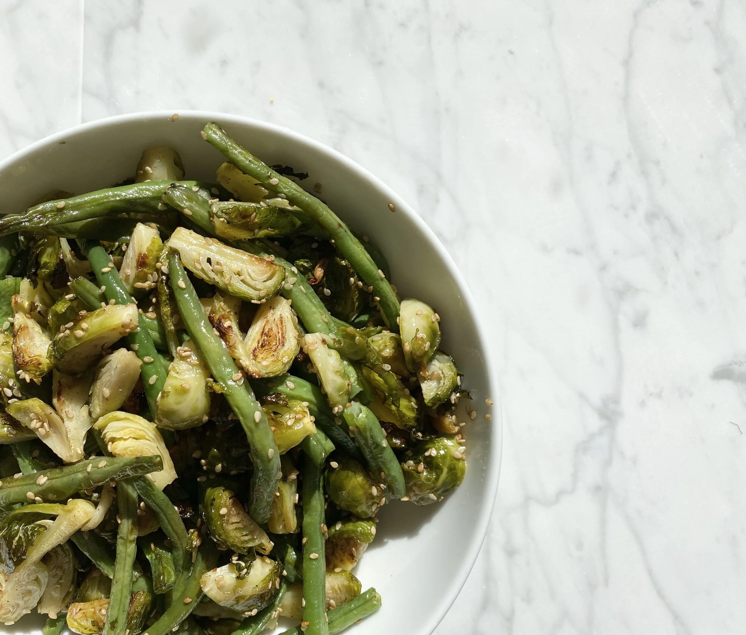 Bake for about 15 minutes, tossing once halfway through. I like my veggies crisp, so feel free to taste them and see if you might like them to go a little longer.