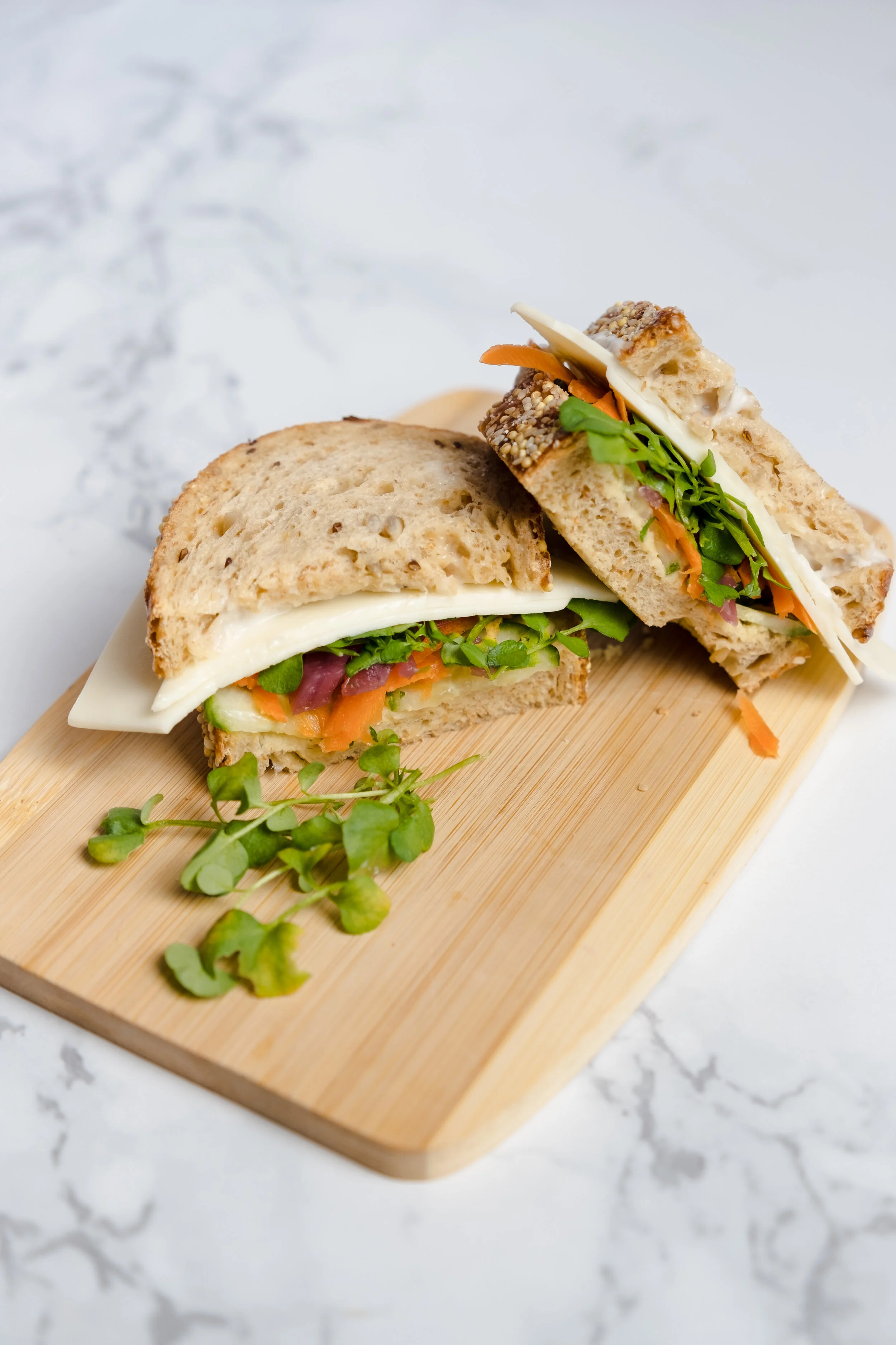 I happened to get a game changing bread recommendation from a friend recently and it’s how this whole sandwich obsession started. Introducing . . . Portifino’s West Coast Grains. You can find it easily on Vancouver Island as I think most grocery stores carry it. Plus it’s baked right here in Victoria. Trust me, it’s a total game changer!